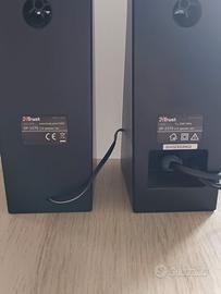 Coppia di casse Trust per PC, perfettamente funzionanti e ideali per migliorare l’audio di computer, laptop o piccoli ambienti domestici