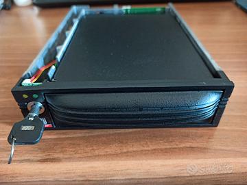 Progettato per adattarsi alla maggior parte degli alloggiamenti ODD da 5,25", l'enclosure per dischi rigidi rimovibili CRU-DataPort DP10 offre un modo rapido e semplice per accedere agli HDD da 3,5". Questa custodia è realizzata in robusto alluminio per la protezione dell'unità e una migliore dissipazione del calore. Consiste in un frame di ricezione montato sull'alloggiamento ODD dello chassis e in un supporto per unità rimovibile a cui fissare l'HDD. Il supporto fino allo standard SAS/SATA 6G ti consente di ottenere le migliori prestazioni dalle tue nuove unità. Il DataPort DP10 offre prestazioni affidabili proteggendo al contempo i dati, rendendolo un'ottima scelta per agenzie governative, cinema digitali e organizzazioni SMB che necessitano di alloggiamenti per unità rimovibili robusti e di alta qualità per archiviare, trasportare e proteggere i propri dati sensibili. Una ventola silenziosa disperde il calore in modo efficace e un esclusivo sistema di raffreddamento a temperatura controllata (TCCS) avvisa acusticamente quando l'unità si surriscalda. La serratura impedisce il furto e funge anche da interruttore di alimentazione. I LED di alimentazione e di attività dell'unità consentono di conoscere lo stato dell'unità a colpo d'occhio. -7 pezzi disponibili. -Prezzo non trattabile.