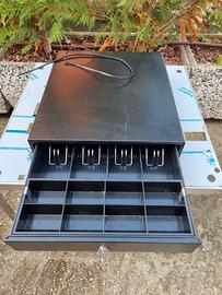 Cassetto porta soldi, nero, con doppia chiave. Cavo per l'apertura automatica dalla cassa incorporato