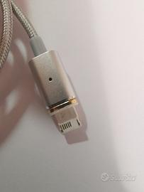 Il cavo è lungo circa 1 mt e ha la protezione con treccia metallica: da un lato ha la normale presa USB A, dall'altro lato ha una terminazione magnetica che si aggancia all'adattatore magnetico per la presa Apple lighning . L'adattatore si inserisce e rimane inserito nella presa dell'iPhone o iPad e consente un facile e rapido aggancio magnetico al cavo: questo consente di evitare l'usura e il possibile danno alla presa dell'iPhone, che si avrebbe invece inserendo e disinserendo un connettore nella presa tutte le volte che si ricarica.