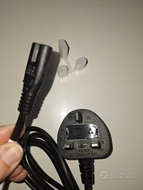 Cavetto elettrico con presa britannica a 3 poli tipo G, con connettore IEC320 C7 a 2 pin (per piccoli dispositivi quali radio monitor PC DVD stampante ecc.), mai utilizzato come da foto REGALO