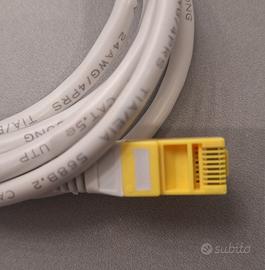 Cavi ethernet tipo RJ45. È lo standard per le connessioni internet e di rete locale. 1) colore nero cat.5E, 8 cavi accoppiati, lunghezza 2,1m, prezzo € 4 2) colore bianco cat.5E, 8 cavi accoppiati, lunghezza 1,6m, prezzo € 4 3) colore bianco cat.5E, 4 cavi accoppiati, lunghezza 1,5m, prezzo € 3 Tutti e tre a € 9