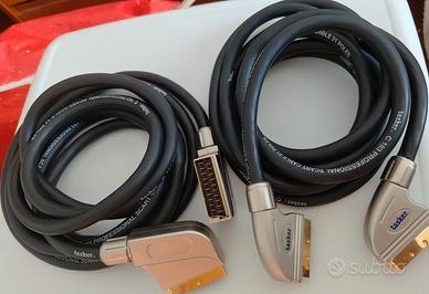Vendo come nuovi, perfetti, due cavi Scart da 3 metri originali TASKER cavo C 183 PROFESSIONAL 21 poli con spine originali Scart TASKER 21 poli tutte in metallo e innesti dorati.