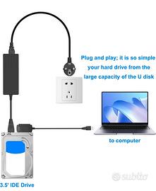 Vendo, a Lecce città, contatti al 334 73 600 97, Cavo Adattatore Convertitore SATA - PATA - IDE a USB 2.0 per 2.5 "3.5" disco rigido HDD SSD/CD-ROM/CD-RW/DVD-ROM con cavo di alimentazione CA per PC Desktop Laptop.