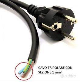 Il cavo composto da tre cavetti: BLU, MARRONE, GIALLO/VERDE il tutto sigillato in una guaina di colore nero a norma IEC.