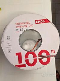 Vendo cavo audio EMOS TP 1.5 da 100 metri, nuovo. - Cavo twin-line non schermato OFC. - 2 x 1,5 mm² di sezione. - Perfetto per impianto stereo.