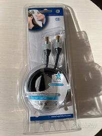 Vendo cavo coassiale maschio-maschio HQ Silver Series, lunghezza 1,5 metri, ideale per collegamento TV, decoder digitale terrestre, ricevitori satellitari e altri dispositivi audio/video.