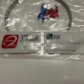 Vendo cavo Ethernet (Patch Cord) professionale della CCS Qubix, lungo 0,5 metri, categoria 5e. Il cavo è nuovo, mai usato e ancora nella sua busta sigillata originale. Lunghezza ridotta (50cm): Perfetto per collegare il modem al router, o per ordinare i cavi dietro la scrivania/mobile TV senza avere matasse ingombranti. Alta qualità: È un cavo certificato per uso professionale, garantisce una connessione stabile e veloce rispetto ai cavi economici standard. Clip incluse: Nella confezione sono presenti delle piccole clip blu e rosse utilissime per riconoscere subito il cavo se ne hai molti collegati insieme. Dettagli tecnici: Modello: CCS RJ45-RJ45 CAT.5E U/UTP-FLEX Lunghezza: 0,5mt Colore: Grigio Disponibili più articoli, possibilità di sconto su acquisto multiplo