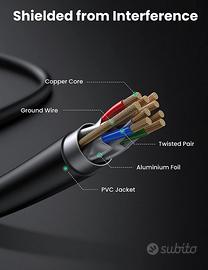 [ Trasmissione Stabile ] cavo lan è FFTP. 4 coppie di fili a doppino intrecciato sono attorcigliati strettamente per ridurre la perdita di trasmissione del segnale, con basso ritardo e senza inceppamenti. Lo strato di schermatura in lamina di alluminio è avvolto per prevenire la diafonia tra i core e garantire una trasmissione stabile del segnale.Due RJ45 placcati in oro e conduttori in rame garantiscono conduttività e buona stabilità di trasmissione.