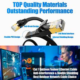 Lunghezza: 20 metri | Resistente alle intemperie | Schermato | Gigabit Anti-jamming | CAT 7 FTP | Colore: Nero | La lunghezza dei cavi e la sepoltura diretta influiranno sulla velocità della rete, quindi il cavo di rete lungo dovrebbe scegliere il cavo di rete con una velocità di rete elevata e un buon materiale. Questa è la scelta migliore per i cavi lunghi.