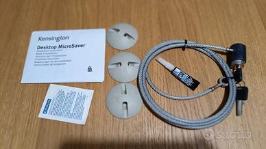 Cavo Kensington blocca PC, originale, nuovo, mai utilizzato. Deterrente visivo e pratico contro furti di attrezzature anche diverse da quelle informatiche.