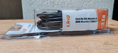 Vendo cavo LinQ da VGA maschio a HDMI maschio, lunghezza 1,8 metri, ancora nella sua confezione originale. Connessione VGA → HDMI, Plug & Play, nessuna installazione necessaria. Ideale per collegare PC o notebook con uscita VGA a monitor o TV con ingresso HDMI. • Marca LinQ, alta qualità. Perfetto per dare nuova vita a vecchi computer collegandoli a schermi moderni.