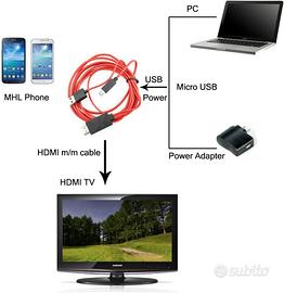 Questo cavo consente di replicare sullo schermo della TV lo schermo dei telefoni predisposti, da porta microUSB a porta HDMI. Tra i telefoni compatibili rientrano: Samsung: Galaxy S2, S3, S4, S5, Note 2, Note 3, Note 4, Mega, Note Edge, Alpha. Sony: Xperia Z, Z1, Z2, Z3, ZL, Z Ultra, X, XA. Huawei/LG/Altri: Alcuni modelli della serie Huawei P, LG G, e tablet (è necessario verificare il supporto specifico sul sito del produttore, poiché la compatibilità varia).
