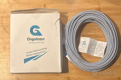 Vendo cavo di rete Ethernet DIGOLOAN Cat 8 (High Speed Network Cable) da 20 Metri. Il cavo è NUOVO, mai srotolato né usato, completo di scatola originale e istruzioni.