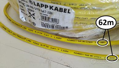 Lapp Kabel Unitronic LAN 1000 (2170614), matassa 62 metri cavo nuovo mai installato. Cat.7 1000 MHz, doppia schermatura S/FTP, 4x2xAWG23/1, guaina LSZH, conduttori rame puro 100% (NO CCA), pieni/solidi/rigidi per posa fissa, impianto, cablaggio strutturato. Cavo Ethernet rete LAN schermato, 4 coppie schermate, categoria 7 ( Cat 7 / Cat. 7 / Classe F ), 10/100/1000Base-T, 10GBase-T. Matassa surplus 62m cavo nuovo, confezione aperta, come foto.