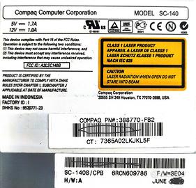 CD Compaq per PC usato, in buone condizioni. Mod. SC-140 40X. Vendo per cambio computer.