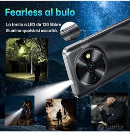 Ha una torcia sulla parte superiore molto potente che si accende con pulsante dal lato del telefono