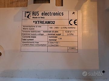 Centrale di allarme Xtream 32 marca Avs Elettronica, usata, funzionante al momento della rimozione avvenuta a febbraio del 2026 completa di tastierino di comando ed inseritore rfid e chiavetta. Sostituita con impianto domotico. Prezzo trattabile.