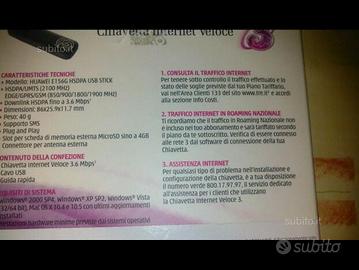 Causa inutilizzo vendesi la seguente chiavetta Wind con supporto Sms, accesso wireless e a banda larga a internet su reti HSDPA, UMTS, GPRS da Pc fissi e portabili. Con lettore MicroSd integrato e imballo cedo a prezzo modico. Non scrivete e-mail e no a curiosi. Per info chiamate o whatsapp al 320.6007290 Mauro.