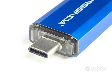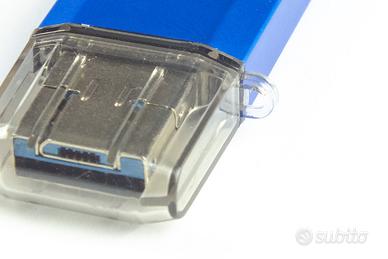 Chiavetta USB 3.0 da 32GB, 64GB o 128GB, che può essere collegata anche ai dispositivi mobili con interfaccia USB type-c o micro USB, come gli smartphone che supportano la tecnologia OTG.