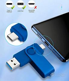 Archiviazione Flash Drive 2 in 1 USB-C: Chiavetta Dual Drive è dotato di connettori USB Type-A e Type-C in un formato sottile e portatile per una facile compatibilità con i dispositivi