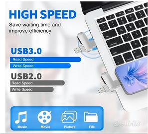 Chiavetta USB 2 in 1 da 512GB compatibile con dispositivi dotati di porta Tipo C e Tipo A. Perfetta per trasferire e archiviare dati da PC, laptop e smartphone in modo rapido grazie alla tecnologia USB 3.0 ad alta velocità.