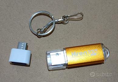 Con adattatore USB-USBC e anellino+catenina portachiavi.