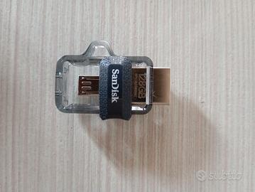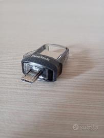 chiavetta USB SanDisk Ultra Dual Drive m3.0 con capacità di 128GB, in condizioni estetiche e funzionali perfette. Caratteristiche principali: Doppio Connettore: Dispone di un connettore USB 3.0 (per PC/Mac) e un connettore Micro-USB retrattile (per smartphone e tablet Android con supporto OTG). Velocità: Prestazioni USB 3.0 ad alta velocità (fino a 150 MB/s) per trasferire file, foto e video in pochi secondi. Design compatto: Design elegante e trasparente con asola per agganciarla al portachiavi. Plug & Play: Subito pronta all'uso, ideale per liberare spazio sulla memoria dello smartphone o passare file velocemente tra dispositivi diversi. Condizioni: Testata come da foto pc Venduta senza confezione originale come da foto.