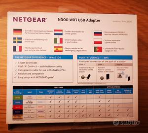 Chiavetta WiFi NETGEAR N300. USB. 300 Mbps. Con scatola originale, CD di installazione e istruzioni.