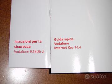 Chiavetta USB Per INTERNET COME NUOVA,FUNZIONANTE,COMPLETA,Marca VODAFONE Internet Key 14.4,Modello K3806Z,Peso chiavetta 26 g,dimensioni:8,4x2,6x1,4 Cm,Auto Istallante SE IL VOSTRO COMPUTER è COMPATIBILE è SCRITTO QUI SOTTO(Non Serve Il Cd D'Istallazione),Chiavetta Completa Di:Scatola,Istruzioni,3 Cover Davanti+3 Dietro 3 Colori:Bianco-Nero-Rosso Metallizzato,Dichiarazione Di Conformità CE,Tappino Chiavetta,Tappo Chiavetta Trasparente,Chiavetta TUTTO COME NUOVO,ORIGINALE,PERFETTO,Memoria Interna Sdram 32 Mbyte-Nand 128 Mbyte,Memoria Chiavetta Espandibile Con Micro Sd Fino 32 Gb(MICRO SD CARD NON COMPRESA),SCHEDA SIM VODAFONE NON COMPRESA(perchè personale e intestata alla persona quindi non la fornisco,va bene 1 qualsiasi scheda sim per cellulari VODAFONE con offerta con internet,la si fa in negozio vodafone o 1 scheda vodafone che avete attiva a casa con un'offerta mensile con internet,credo vada solo con schede vodafone ma non l'ho provata con schede di altri operatori quindi non ne sono certa),Sulla Foto Dove La Chiavetta Ha La Luce Rossa Accesa Non è Verde Perchè La Chiavetta Và Ma La Mia Scheda Sim che c'è all'interno della chiavetta nella foto è scarica di soldi se no sarebbe verde la luce ma è rossa perchè comunque la chiavetta si accende e si installa,Funzionante,L'Ho Usata Solo Pochi Mesi,SENZA DIFETTI(SOLO LA SCATOLA HA SCRITTE CANCELLATE CON SCOLORINA IL RESTO è TUTTO PERFETTO)SONO DISPONIBILE A PROVA SE AVETE 1 SIM VODAFONE CON OFFERTA INTERNET E CREDITO.