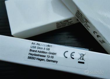 Chiavette USB 2.0 con capacità di 8Gb nuove, mai utilizzate in confezione originale. Pezzi disponibili 20.