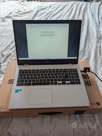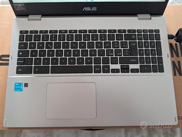 Chromebook asus come nuovo display 15,6", 18,9mm di spessore e 1,74kg di peso. la batteria ha una durata di 11 ore. Completo di mouse, carica batteria, libretto d'uso e scatola