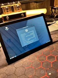 Comodissimo tablet pc con una discreta dotazione di ram e memoria interna Dotato dinporte usb-c e hdmi mini, viene fornito con la sua penna e carica batterie. Manca la tastiera che si è persa durante un trasloco. Con linux da il meglio di se. A corredo la custodia per tenerlo dritto. Presenta un piccolo difetto come in foto, ma non ne impedisce il suo completo utilizzo.