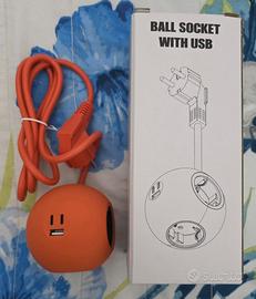 Cubo con design sferico, 7,5 x 7,5 x 7,5 cm, cubo di presa più piccolo di una mano, consente il collegamento di spine e USB da diverse angolazioni, dotato di cavi lunghi 1,5 m.