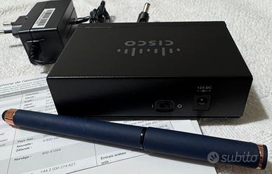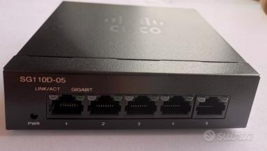 Vendo Cisco SG110D-05 – Switch Desktop 5 Porte Gigabit (Nuovo) Compatibile con tutti i router domestici, plug-and-play e silenzioso. Caratteristiche principali: •5 porte Gigabit Ethernet •Fanless, silenzioso •Dimensioni compatte •Non necessita di software •Confezione completa con alimentatore e manuale Condizioni: Nuovo, mai utilizzato. Scatola aperta solo per foto. Consegna: Spedizione disponibile o ritiro a mano a Genova Prezzo: 65 € + spese Subito