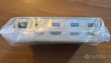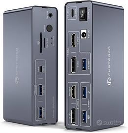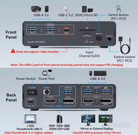 La docking station KVM offre 1 ingresso USB-C (MST) per i laptop e 1 ingresso DP*2 + USB-A integrato per i desktop