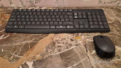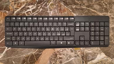 Combinazione di tastiera e mouse wireless Logitech MK235, Cina, del 2022. Provvista di ricevitore USB e documentazione per l'utente ma non di batterie. - Produttore: Logitech - Modello: MK235 - Origine: Cina - Anno: 2022 - Dimensioni tastiera (L x H x P): 43,55 x 2,05 x 13,75 cm - Dimensioni mouse (L x H x P): 6,15 x 3,52 x 9,77 cm