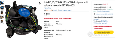 Dissipatore Stock Intel,Il Tutto Già Montato.