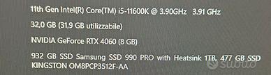 Scheda madre z590 gaming X Gigabyte Msi rtx 4060 8gb I5 11600k nuovo sostituito 6 mesi fa con garanzia 32gb ram Dissipatore 240mm asus rog