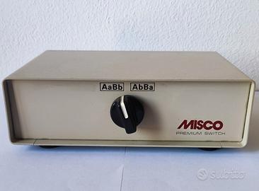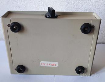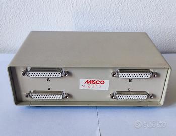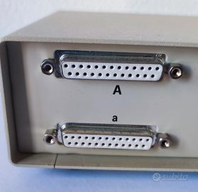 Switch Misco vintage anni '90 in box metallico cm18x13x6 con 4 porte parallele LPT-DB25 e selettore manuale per condividere 2 periferiche (stampanti, scanner ecc.) con 2 computers.