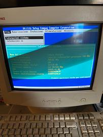 Per appassionati computer vintage, Sistema computer e monitor originali e funzionanti; tastiera e mouse non originali. Intel Celeron 700, 512MB RAM, HDD Hitachi 160GB, lettore e masterizzatore cd, doppia licenza Windows 98 e 2000 (installato Windows 2000).
