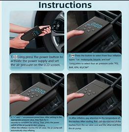 Compressore Elettrico Portatile per Pneumatici con Display Digitale, 4 Modalità di Inflazione e Luce SOS - Pompa per Pneumatici USB Ricaricabile senza Fili per Auto, Moto, Bici, Palloni - Utilizzo per Sport All'Aperto e Campeggio, Pompa per Pneumatici per Auto, Manutenzione per Moto, Design Compatto, Costruzione Robusta