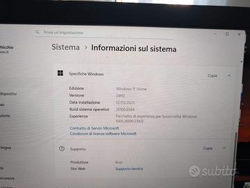 Sistema operativo Windows 11 64 bit già installato e pronto all’uso.