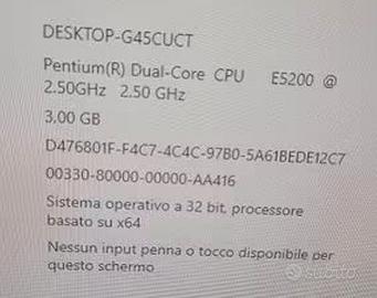 Computer Acer Aspire M1641, acquistato nel 2010. Home Premium Tower PC : - PC - Intel® Pentium® E5200 2,5 GHz - 3 GB RAM - 300 GB Hard disk - NVIDIA® GeForce G100 - Windows 10