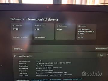 Scheda grafica nvidia Geforce RTX 3050 - processore intel core i7 -11800H @2.30GHz dotato di una RAM di 16 GB