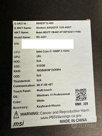Vendo nuovo, mai aperta scatola, PC ALL in One MSI modern am242tp 12m-455it. Caratteristiche in foto.