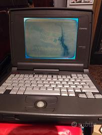 Computer vintage Compaq Contura 410C FUNZIONANTE ma con problemi schermo come da foto e due rotture nelle cerniere di apertura foto allegate. Quindi venduto per pezzi di ricambio