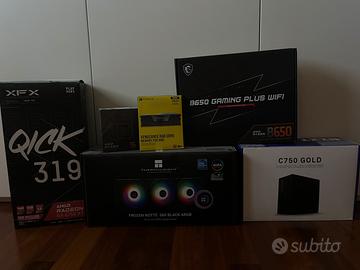 Vendo postazione gaming/professionale completa, curata maniacalmente e basata sulla modernissima piattaforma AM5 (DDR5). Non è un PC "vecchio" come molti che vedete online: questo è il top della tecnologia attuale, pronto per i giochi e i programmi più pesanti dei prossimi anni e pronto per futuri aggiornamenti su base AM5. SPECIFICHE TECNICHE • CPU: AMD Ryzen 5 7600X (La versione "X" ad alte prestazioni, 5.3GHz Turbo). • GPU: AMD Radeon RX 6750 XT 12GB VRAM (Domina il 1440p con fluidità estrema). • RAM: 32GB Corsair Vengeance DDR5 6000MHz RGB (Il top per velocità e multitasking). • SSD: Lexar 1TB PCIe Gen 4x4 NVMe (Velocità mostruosa fino a 7400MB/s: caricamenti istantanei). • MOBO: MSI B650 Gaming Plus Wi-Fi (Socket AM5 con Wi-Fi 6E e Bluetooth integrati). • DISSIPATORE: Thermalright Frozen Notte 360 Black ARGB (Tripla ventola con effetto Infinity Mirror). • PSU: NZXT C750 Gold (Certificato 80+ Gold, silenzioso e super affidabile). • CASE: Phanteks G360A (Airflow perfetto e pannello in vetro temperato). INCLUSO NEL PREZZO • Monitor: KOORUI Gaming 24.5" Full HD, 170Hz (tramite DisplayPort), tempo di risposta 1ms. Fluidità assoluta per il gaming competitivo. • Periferiche: Tastiera e Mouse inclusi. • Tutte le confezioni originali conservate maniacalmente. PREZZO: 1.390€ comprensivo di tutta la postazione. Ritiro a mano, disponibile a visione. Trasparenza totale. Per qualsiasi informazione non esitate a contattarmi!