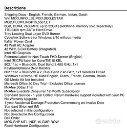 Vendo per inutilizzo computer portatile Dell inspiron 5567 in ottime condizioni. 16 gb ram 1 T memoria. Ritiro a Nervesa della battaglia, non spedisco.