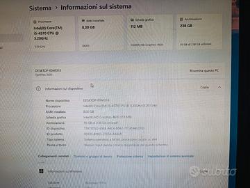 Dell Optiplex 3020, Intel Core I5 3.2ghz, 8GB di RAM, disco SSD Samsung 256GB. Ottime condizioni, preinstallato con W11 pro 25h2, buone prestazioni generali, ottimo per utilizzo casa o ufficio. Solo case, no tastiera, mouse e monitor.
